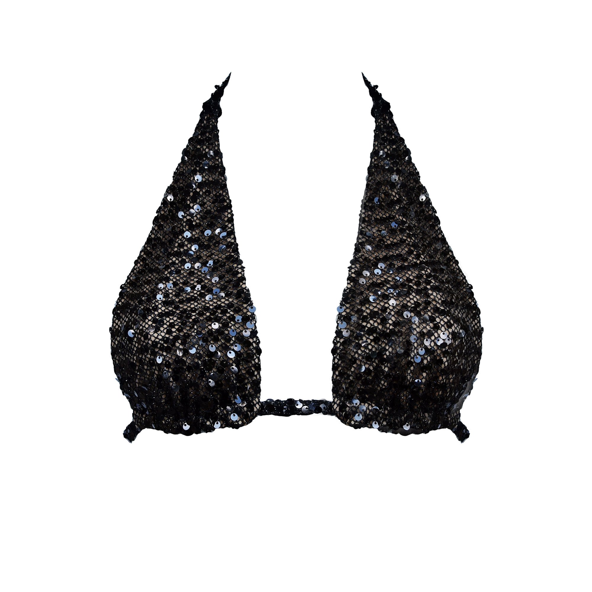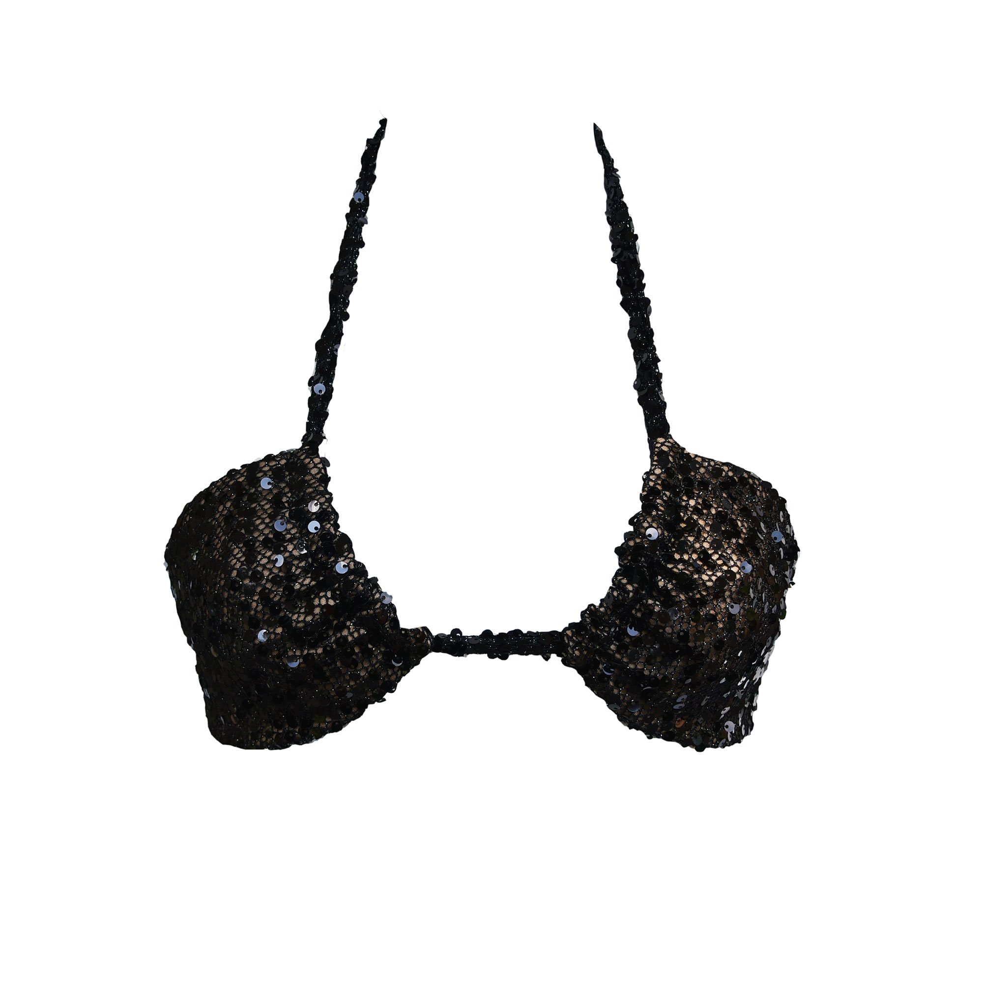 BLACK SEQUIN MESH BIKINI BRA